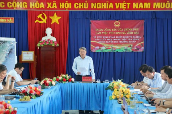 Phát biểu kết luận, Bộ trưởng Nguyễn Hải Ninh hoan nghênh tinh thần trách nhiệm của lãnh đạo tỉnh và cán bộ cơ sở, biểu dương nỗ lực của UBND xã Vĩnh Hải trong việc sớm ổn định tổ chức, triển khai hiệu quả các nhiệm vụ trọng tâm. Bộ trưởng yêu cầu địa phương bám sát thực tế, đổi mới tư duy lãnh đạo, phát huy tiềm năng kinh tế biển và du lịch; đồng thời rà soát chế độ, chính sách cho người dân bị ảnh hưởng bởi dự án điện hạt nhân theo đúng Nghị quyết 189, bảo đảm quyền lợi và ổn định đời sống.