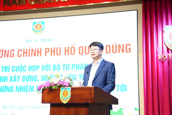 Chiều 11/11, Phó Thủ tướng Chính phủ Hồ Quốc Dũng đã chủ trì cuộc họp với Bộ Tư pháp về tình hình xây dựng, hoàn thiện thể chế, pháp luật và những nhiệm vụ trọng tâm thời gian tới. Báo cáo với Phó Thủ tướng, Bộ trưởng Bộ Tư pháp Nguyễn Hải Ninh nhấn mạnh, với sự nỗ lực rất lớn, Bộ Tư pháp đang cố gắng để hoàn thành tốt các nhiệm vụ được giao.