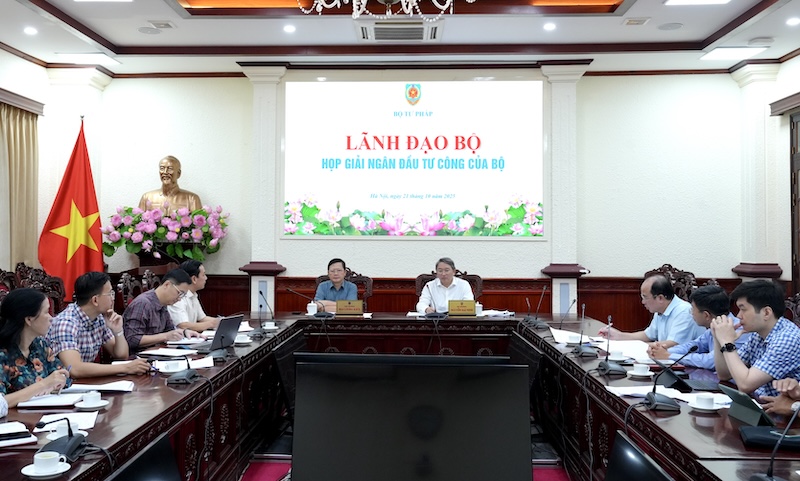 Sáng 21/10, Bộ trưởng Bộ Tư pháp Nguyễn Hải Ninh đã chủ trì cuộc họp về giải ngân vốn đầu tư công của Bộ. Cùng dự có Thứ trưởng Mai Lương Khôi và lãnh đạo một số đơn vị liên quan.